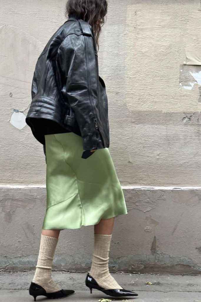 Продолжая эту линию, разбавляем бельевую эстетику ветровкой и очками в стиле спорт-шик – получается дерзкий, но такой пронзительно-нежный образ.