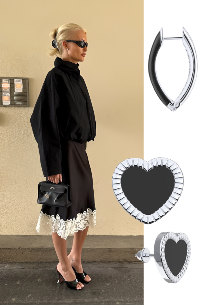 Самый недооценённый приём – добавить очаровательный акцент туда, где его не ждут. Сердечки или нежный перламутр выглядят ещё выразительнее там, где им «не место» – с деловым костюмом, в монохромном тотале, в образе «серьёзного человека». Шаблон разбивается об эту нетипичную деталь: «женщина в пиджаке» сольётся с толпой, но «женщину в пиджаке и кокетливых серьгах» выделят и запомнят.