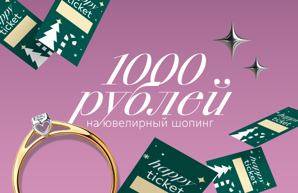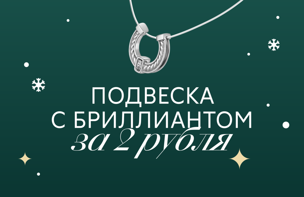 В Новый год мечты должны сбываться – в том числе и ваши! Покупайте драгоценные подарки на сумму от 480 рублей, и забирайте серебряную подвеску на удачу всего за 2 рубля.
