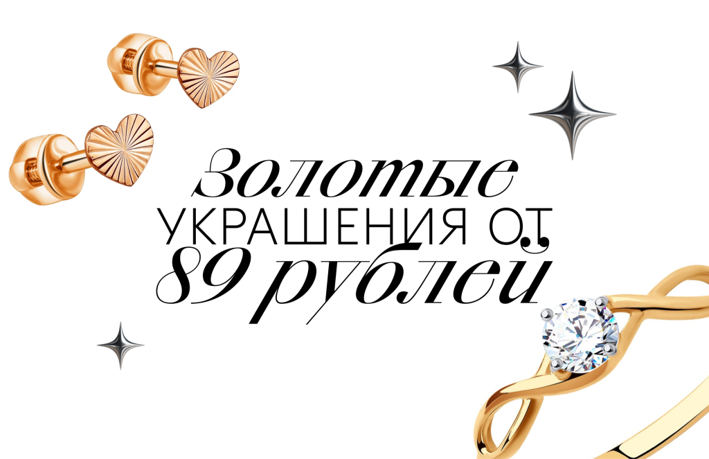 Хотите красиво признаться в любви или сказать искреннее, тёплое «спасибо» родному человеку? Выбирайте золотые украшения от 89 рублей и дарите любимым частичку волшебства в эту новогоднюю ночь!