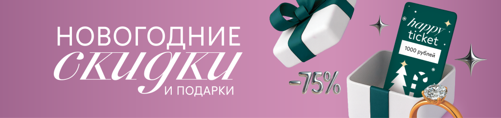 Сезон подарков уже наступил – пора окунуться в беззоботный новогодний шопинг! По 31 декабря наслаждайтесь атмосферой праздника, выбирайте драгоценные подарки и не беспокойтесь о бюджете — вас ждут грандиозные скидки до 75% на ювелирные украшения и множество сюрпризов от Славия.