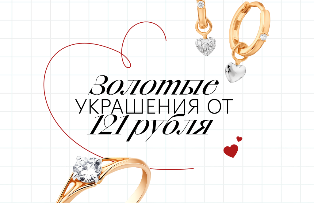 Хотите красиво признаться в любви или сказать искреннее, тёплое «спасибо» родному человеку? Выбирайте золотые украшения от 121 рубля и дарите любимым частичку волшебства!
